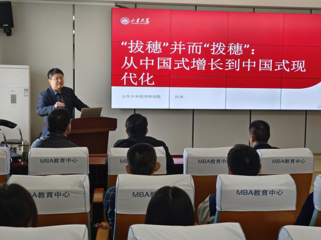 11月7日下午,山东大学经济研究院副院长孙涛教授应邀在学院707报告厅作《“拔穗”并而“拨穗”:从中国式增长到中国式现代化》专题学术报告。报告会由聊城大学人文社会科学处处长、商学院(质量学院)院长杨宏力主持,学院副院长王金河、梁树广出席,学院部分教职工及应用经济学全体研究生参会。
