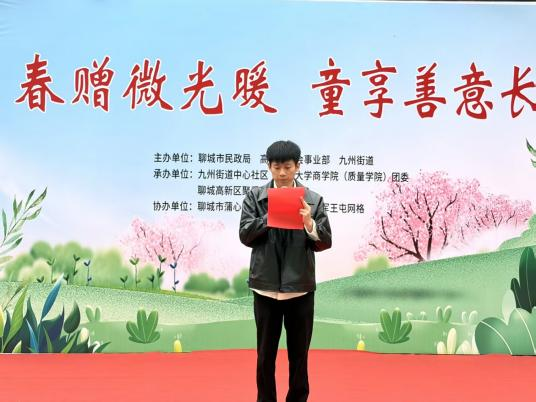 为切实关爱流动儿童成长,搭建校社联动公益桥梁,4月9日,商学院(质量学院)志愿者团队赴聊城市东昌府区军王屯社区东区广场开展“春赠微光暖,童享善意长”九州街道流动儿童物资捐赠活动。高新区社会事业部、九州街道办、聊城高新区聚爱志愿服务中心及商学院(质量学院)相关负责同志出席活动。