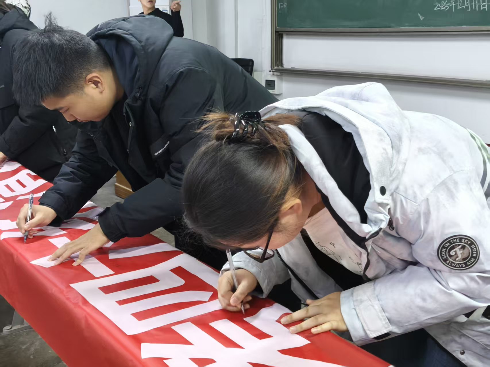 学院学子有序上台,在诚信应考横幅上郑重签下班级与姓名,每一笔都是对诚信应考的承诺,更是对自身努力的尊重。此次活动既是考前动员,更是生动的思政教育课,有效推动了外在纪律要求向学生内在自觉的转化,进一步强化了学院学子的诚信意识与规则意识,学院学子纷纷表示,将严守考试纪律,将以实际行动践行诺言,以真实成绩交上满意答卷。