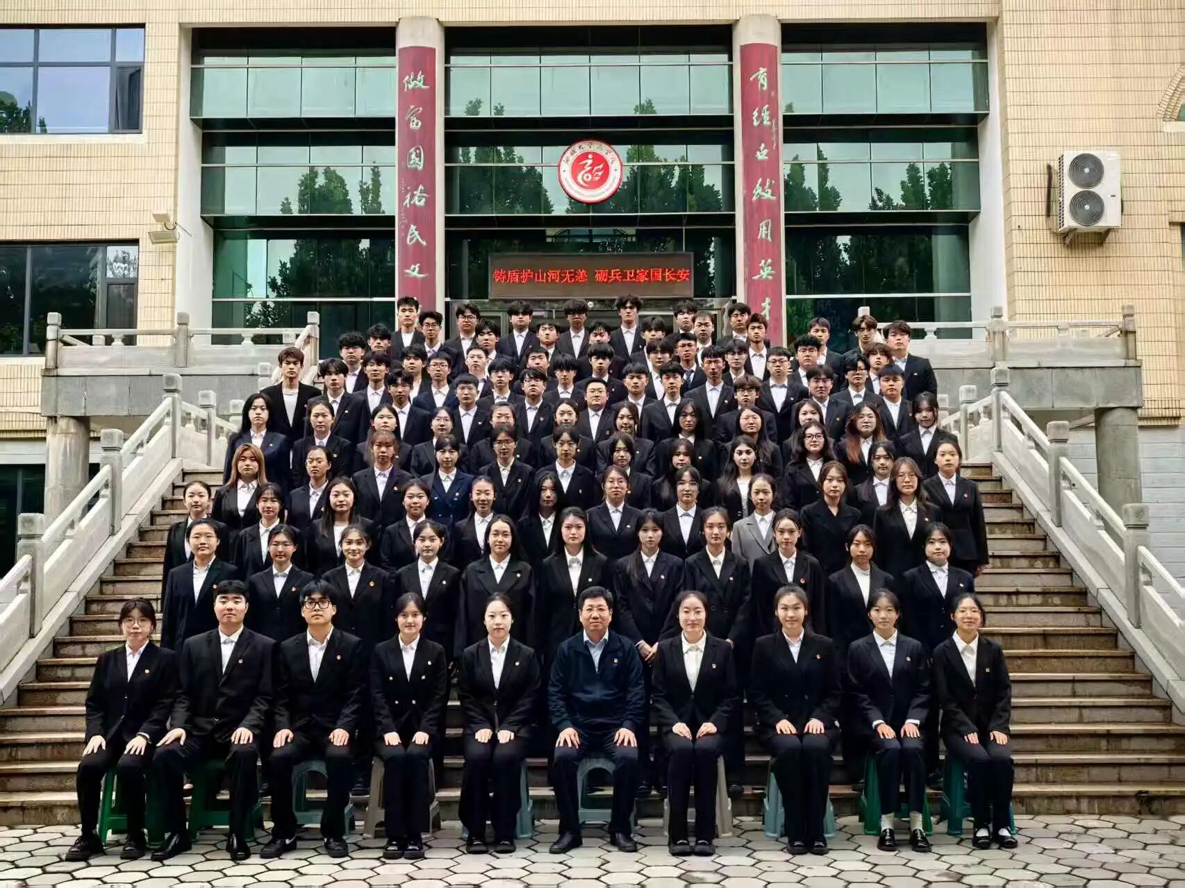 大会在庄严的国歌声中拉开帷幕。工作人员宣读了学校各兄弟学院发来的贺信。