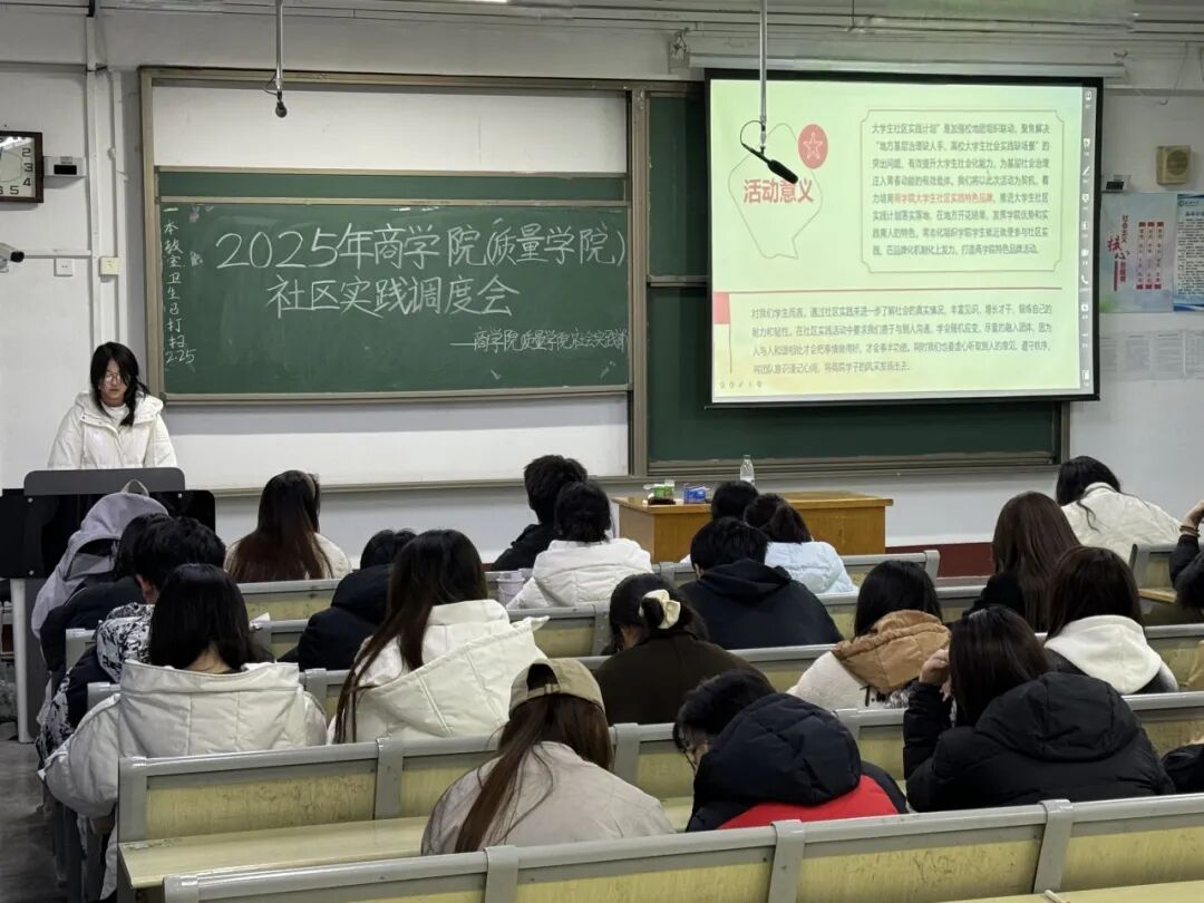 为科学规划新学期社区实践工作,进一步提升学生实践能力和社会责任感,2月26日,商学院(质量学院)学生会社会实践部于302室组织开展大学生社区实践调度会,学院2023级、2024级班团参加会议。
