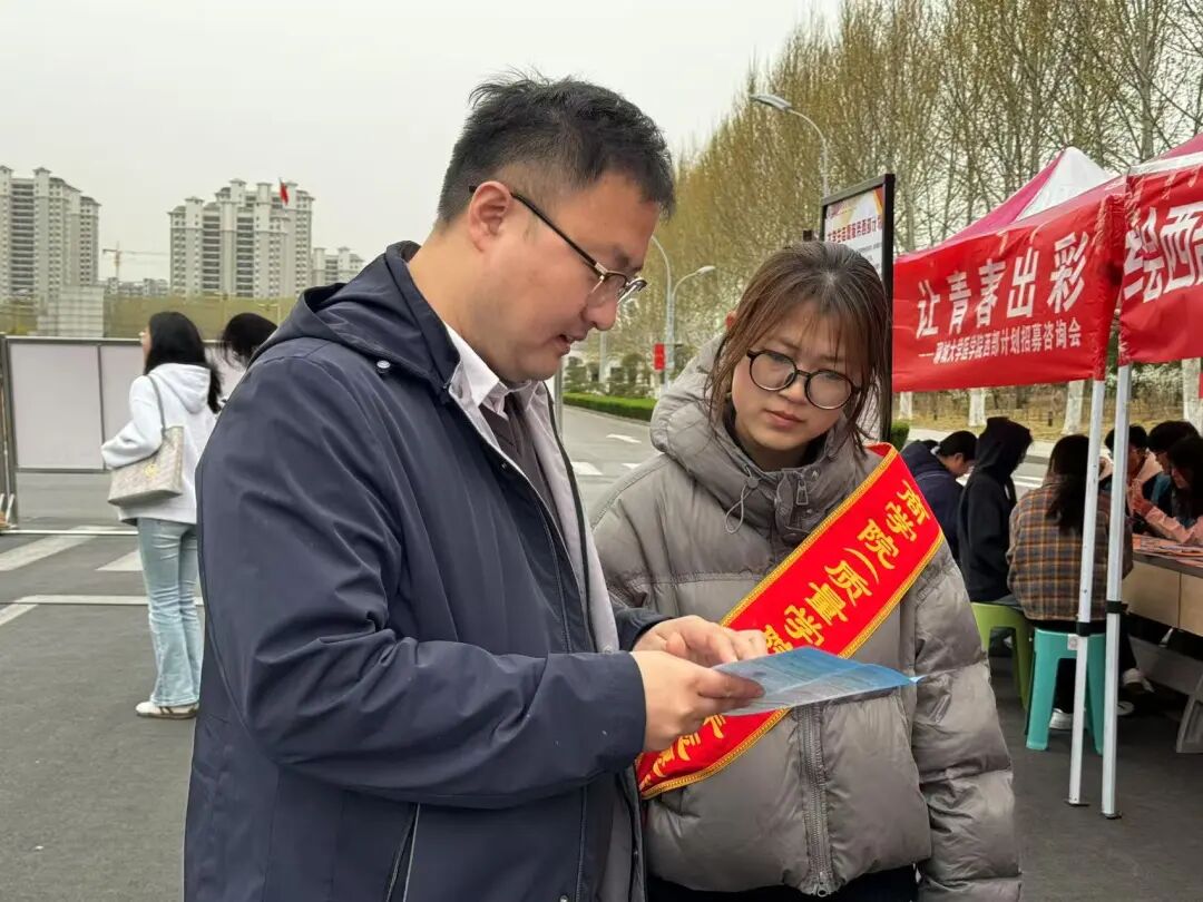 3月27日,商学院(质量学院)于东校区逸夫图书馆南校训石前举办“绘西部新篇,以青春为卷,共‘商’西部未来”2025年大学生志愿服务西部计划招募咨询会,学院辅导员高鹏到场指导。