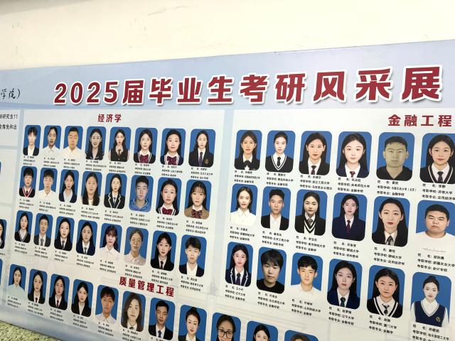 我院从文化浸润、榜样领航两方面构建全方位学风建设体系。从文化浸润角度,打造集学科特色、科创成果、学生活动与校企合作于一体的学风文化墙;毕业季通过师生座谈会等活动传承学风,搭配系列文化活动潜移默化涵养品格,增强学生专业认同感与归属感。依托社区实践、“三下乡”“返家乡”等社会实践及文体活动,让学生在实操中成长。榜样领航方面,推出2025届考研风采展,经济学、金融工程等多专业学子斩获升学佳绩,以鲜活榜样激发内生动力,营造比学赶超的浓厚氛围。