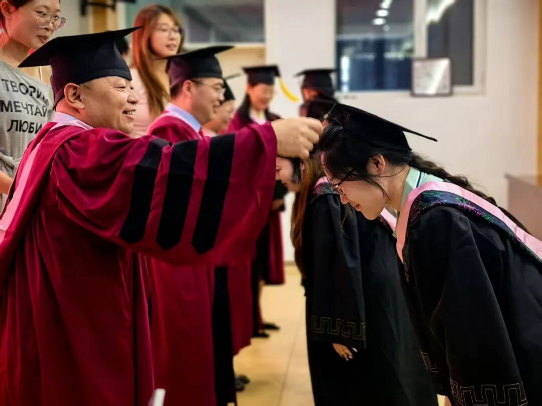 6月17日,商学院(质量学院)2025届毕业生学位授予仪式于东校区1#707教室举行,学院教授高建刚、乔美华、匡萍,副教授王金河为2025届毕业生拨穗正冠,颁发学位证书。
