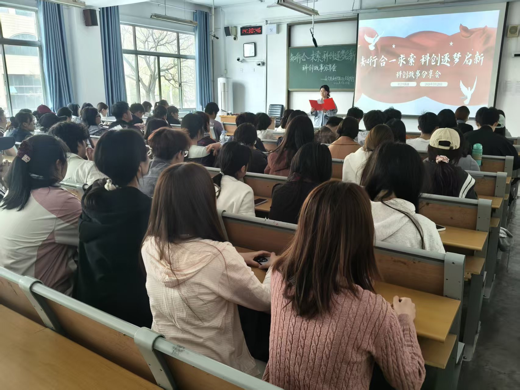 为深入落实学院创新型人才培养要求,激发青年学子科创热情,3月28日,商学院(质量学院)于东校区1#205室举办“知行合一求索,科创逐梦启新”科创故事分享会。2024级华晨君、曲国受邀担任主讲人。
